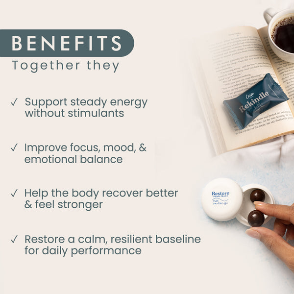 We formulate our products to address exactly that, so your body can return to balance naturally. And because we believe supplements shouldn’t feel like a chore, we made them taste like a treat. Every chocolate and gummy we craft is packed with plant-based, sugar-free, clinically studied ingredients that speak your body’s language. No artificial fluff. No pills. No bitterness.