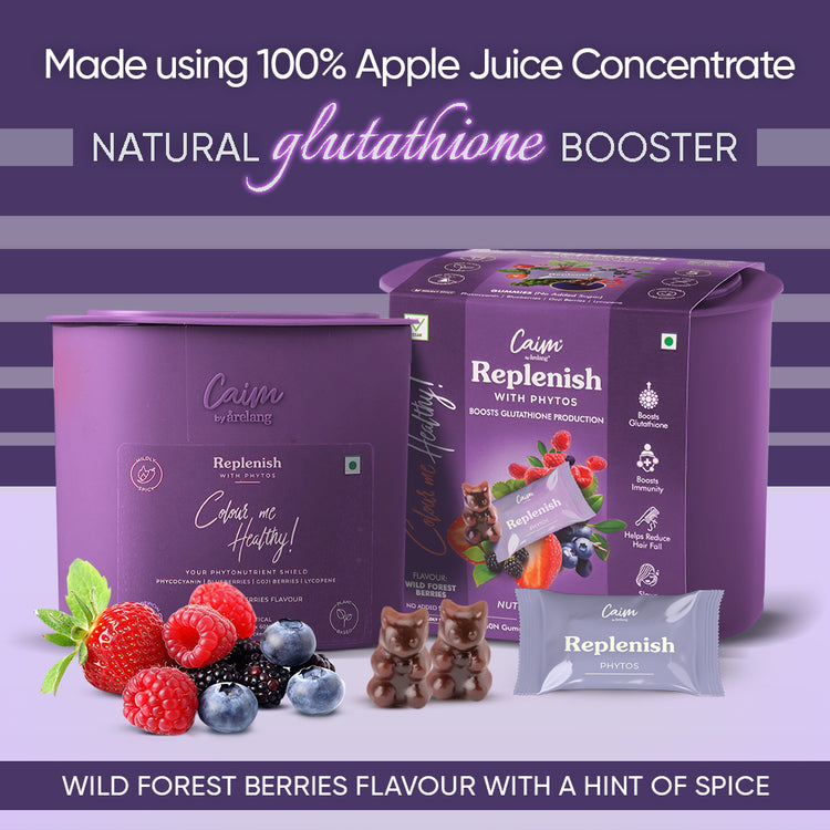 Each gummy is a powerful blend of 7 potent clinically tested plant-based pigments that help your body boost its own Glutathione —the master antioxidant responsible for glowing skin, better immunity, reduced signs of ageing & reduced hair fall.